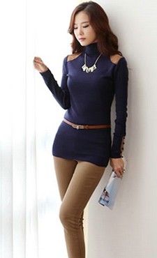 2、将两手手指并扰,向前伸直,左手掌置于右手指背上,右手掌指平贴腹部,用力向前推按,继而左掌用力向后压,一推一回,由上而下慢慢移动,似水中的浪花。