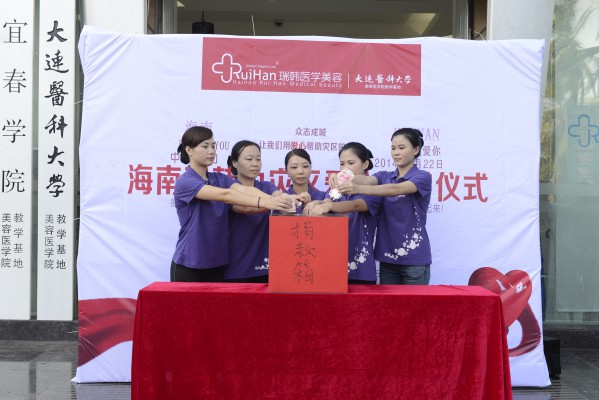 当日上午8时许,在位于南亚广场附近的红妆海府分院和万绿园附近的瑞韩医学美容整形医院,红瑞集团发起了两场声势浩大的赈灾献爱心活动,集团旗下六大品牌连锁机构(红妆美业、红妆学校、红妆医美、瑞韩医美、红洋坊美业、悦健康美疗中心)员工排成长龙似的积极捐款,向海南遭受台风袭击的人们奉献出爱与关怀,仅张董个人就捐助了20000元。另外,在红瑞驻守工作的文成排毒项目合作厂家和媞芙瑞微观小分子项目合作厂家也分别向海南灾民各捐助了20000元。据悉,这次红瑞共募捐了100185元爱心善款。