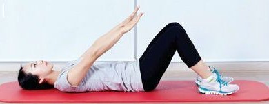 如果你觉得做仰卧起坐有困难,那就改做弯身运动吧,这同样有效,并且还更简单易做。仰卧于地板上,把双手放在身体两侧。只用你的腹部肌肉把臀部提起离开地面,同时要把双臂和肩膀贴在地板上。保持这样的姿势几秒钟,然后轻轻把身体落回地面。这样重复15-20分钟。